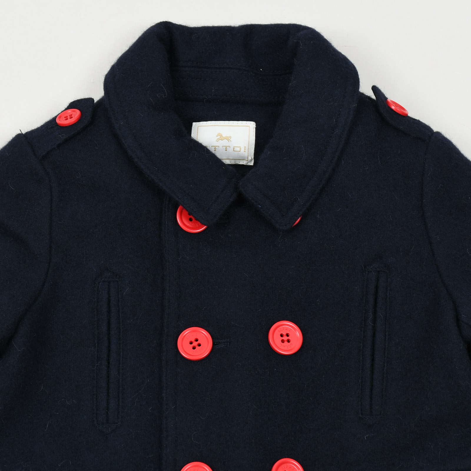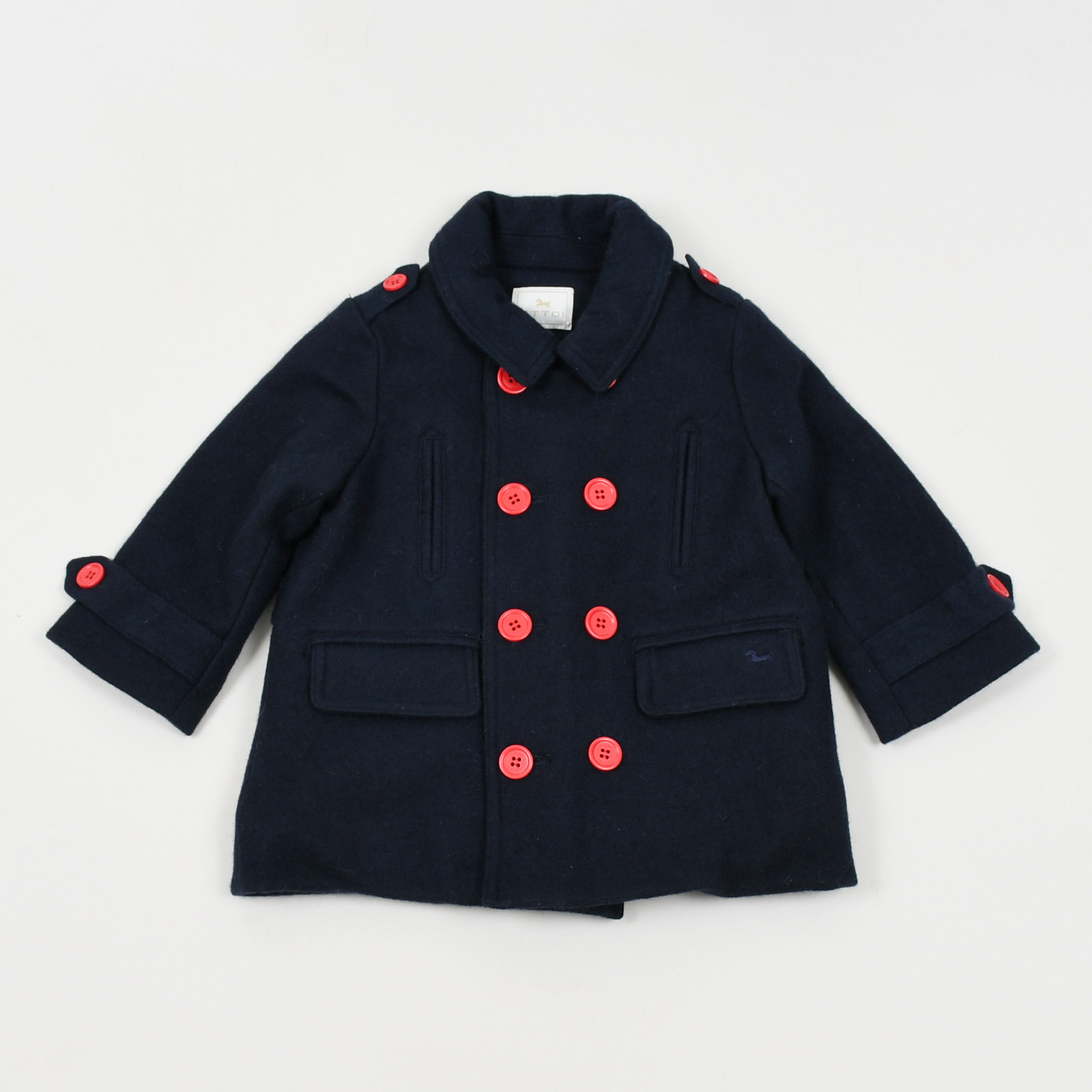 ■ 상세설명 : 레드 단추로 포인트를 준 멋스러운 유아코트입니다.