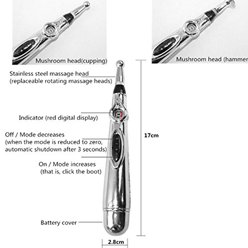 Studio : China Publisher : China Binding : Health and Beauty Product Description 6.Automically search the acupuncture,it will not work if not find the acupuncture and if meridian obstruction; 7.Transient pulse; 8.Accurate physical therapy; 9. Three types of heads for choose and possess three main functions: (1) Dome type:Superficial therapy, which is applicable for health care and facial beautification; (2) Node type: Node therapy, which is applicable for partial body pains; (3) Spheroidaltype: Partial therapy, which is applicable for quickly alleviating pain. 10.Affordable family use Voltage:DC1.5V(one AA battery, not include) Output:3.7V;300mA /-50mA Pulse Frequency: 0.01-300Hz Pulse Width:100us-320us Maximum Output Extent:500ohm Load Voltage: 3.3V Dimension: 200*30mm Package Includes:(No Retail Box, packed by Bubble) 1 x Meridian Energy Pen 1 x Spheroidal Type Head 1 x Dome Type Head 1 x Manual Please Note: Treatment principle of Electronic Acupuncture Pen is used electrical pulses to to stimulate acupuncture points then to activate cell and dredging the channel, while there is a condition to generate the electrical pulse,that is,current's positive and negative poles must be turned on. The pen is a monopole current(the nib) output, so the other pole current should be conducted by hands and form circumfluence with the nid of the Electronic Acupuncture Pen ,so that it will produce electrical pulses.So it is normal to feel a little numbness of the holding hand, it is how the meridian pen works, not quality problem. In the current return process, depending on the size of the hands'resistance value,the strength you feel will be a little different.Some people would feel more strong and some will feel weak. Young people or health people will feel a little stronger. Elderly or in poor health people will feel weak. Phenomenon like "Electric leakage, Electric numbness, Electrical Stimulation" of Electronic Acupuncture Pen,like discussed above,is not quality problem, but its treatment principle. 0