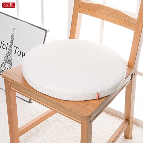 Baibu Super Breathable Sandwich Mesh Fabric Round Seat Cushion with Washable Foam for Office/Vehicles/Home White 16x16 1PC