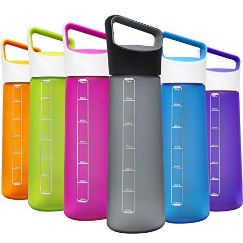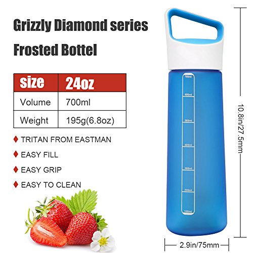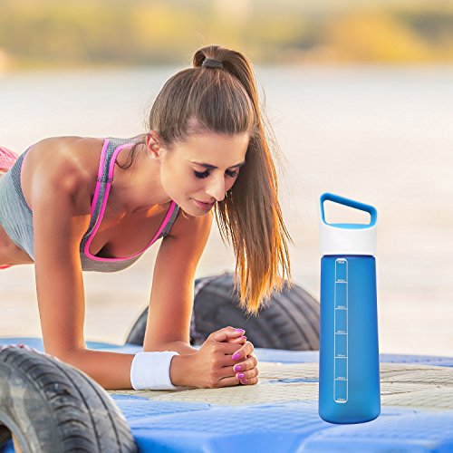 ✔ INTIMATE DESIGN - 700ml water bottle,More comfortable grasp with frosted cup body, silky smooth feeling both fully sealed watertight, wide-mouth is more convenient to drink and refill.Splash guard and filter accessory, easy for tea, lemonade, fruits beverage making.