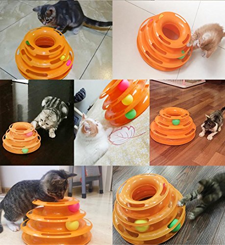 -. Feature : Expertly designed with 3 levels of tracks and 3 brightly colored balls, your cat can nudge with its nose or shove with its paw. This cat track toy elevates playtime and interactive play with your cat. / Unique to this cat track toy, the balls will not come loose during play and will securely spin across the tracks for repeated fun. / The package include 3 mice toys, they can work with the track tower, to provide an amusement park for your cat. / A purfect way for your curious cat to get the mental and physical exercise, they need to stay healthy and engaged from day to day, while channeling their hunting instincts as they chase down the fast-moving balls. / Last but not least. Tower is 100% safe for your kitten, it does not include any strings, yarn, ribbons, or other ornaments that could pose a choking hazard. Thanks to its non-skid pads, at the bottom, and not requiring any supervision, it can keep your cats happy while they¡¯re at home alone.