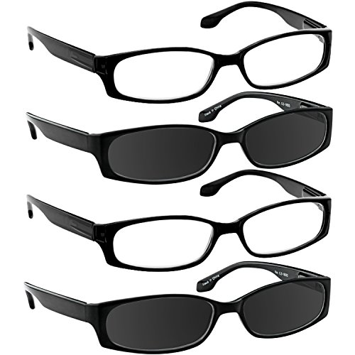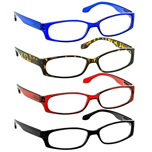 -. Feature : VALUE IS ONLY THE BEGINNING: Aren't you tired of paying steep P.R.Ices for flimsy glasses that look cheap? Allow your personal style to shine through with 4 Pairs of superbly crafted, ingenious stylishly designer reading glasses. Wearing these reading glasses at home, in bed, at the office, or wherever you need them, means you'll always look sharp, and see sharper! / DURABLE BEYOND MEASURE: We paid close attention to the "Screws Fell Out", "SP.R.Ings Fell Off", and "Arms Snapped Off" comments you'll see on other product reviews and strategically ENGINEERED these reading glasses to withstand the daily elements with Sure-Flex Comfort SP.R.Ing Arms and Dura-Tight Screws. The result? Reading glasses which outlast and outshine the cheaply made, overP.R.Iced copycats marketed by the competition. / ENHANCE YOUR VISUAL APPEAL: You know how you look is as important as how clearly you can see. It's frustrating that most reading glass manufacturers ignore fashion. That's why these reading glasses were ergonomically crafted with a sleek, modern design that focuses on fashion, to enhance your attractiveness. These luxuriously simple glasses will enrich your head-to-toe-look. Just look at them! It's easy to see why so many customers say, "I take a pair with me everywhere". / CRYSTAL-CLARITY WITH QUICK-CLEAN PROTECTION CLOTH: Think back to all those times you've spent looking for something to clean your reading glasses. Each Pair of our reading glasses comes with its individual micro-fiber cleaning cloth bag to remove those annoying smudges before they get in the way. / COMFORT GUARANTEE: If you've purchased reading glasses online before you probably know what we mean by "the wrong fit". Pinchy-tight, or too-loose reading glasses which slide down your nose are enough to drive anyone crazy, which is why we designed these reading glasses to support your ultimate comfort; with durable sP.R.Ing hinges which easily expand hug your temples, for the perfect fit, every time; backed by a 180 day no questions asked money back guarantee.