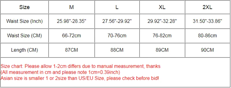 Note:Asian size is smaller 1 or 2size than US/EU Size