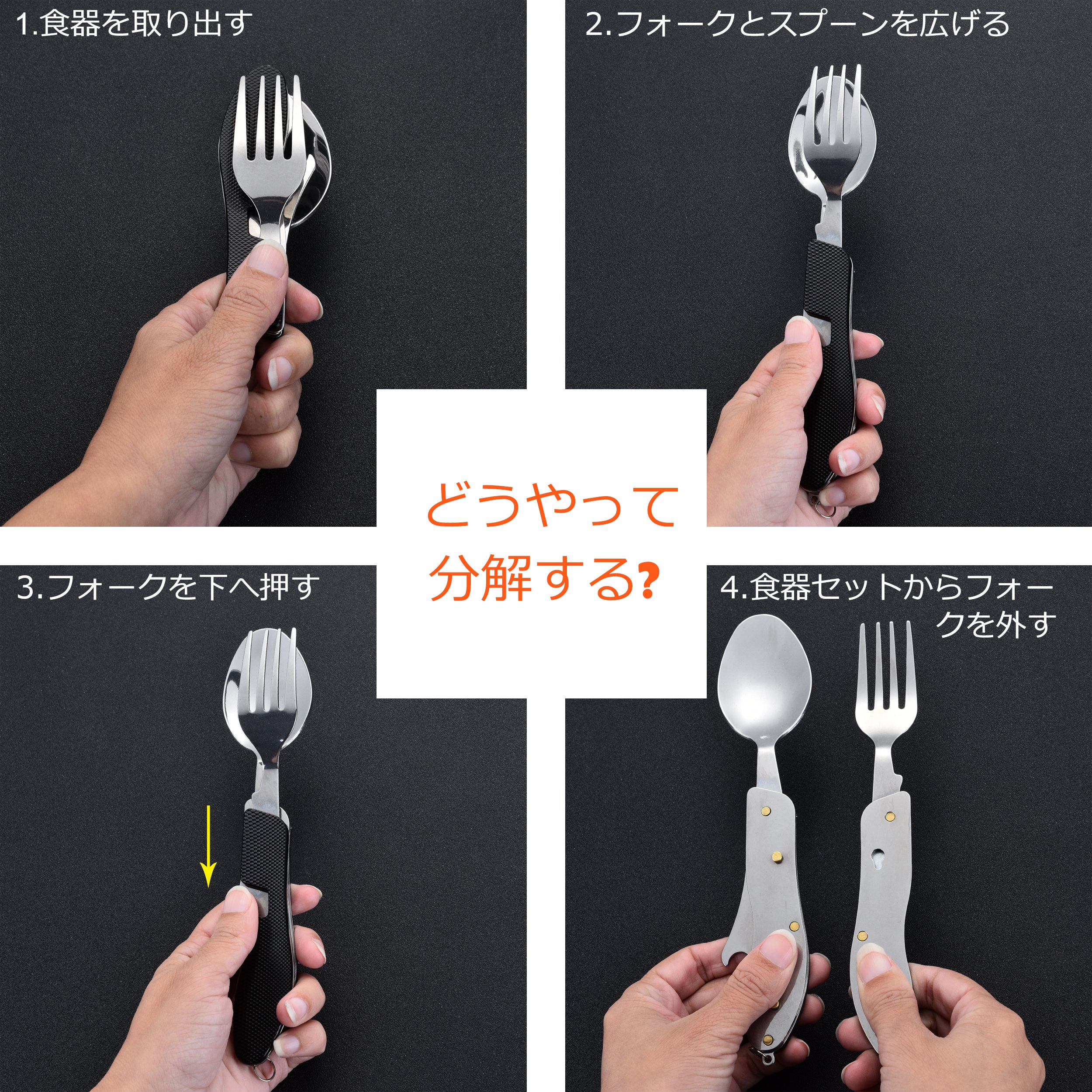 2's: Multifunctional set knife, fork, spoon, bottle opener, can opener, cork bottle remover, reamer