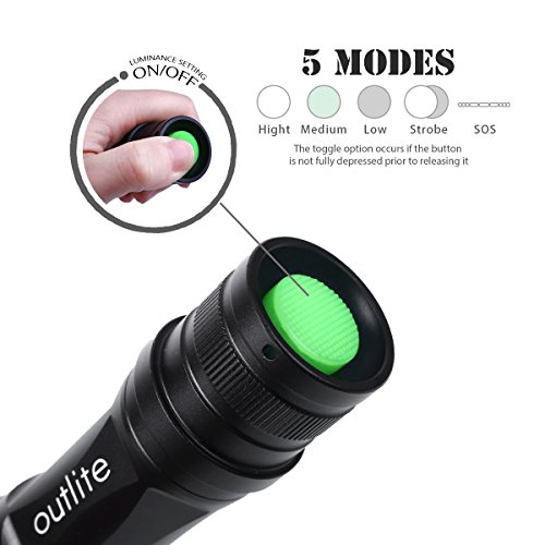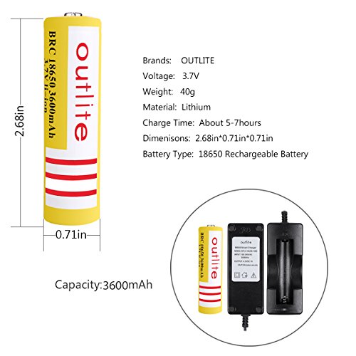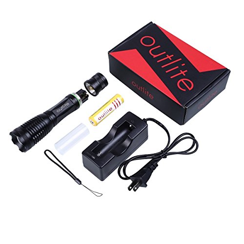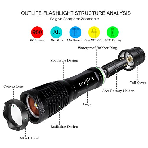 -. Title : [Rechargeable 18650 Battery and Charger Included] Outlite E6 900 Lumens Tactical Flashlight (Bright CREE XML T6 LED Light)Outdoor Water Resistant Torch with Adjustable Focus and 5 Light Modes