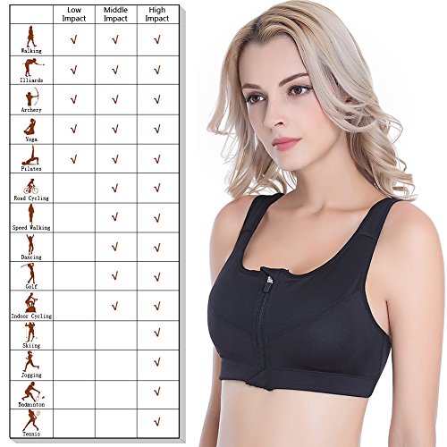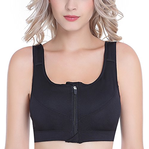 Title : Beownwear Women's Level 3 High Impact Front Zipper Padded Wirefree Sports Bra (L, Black)