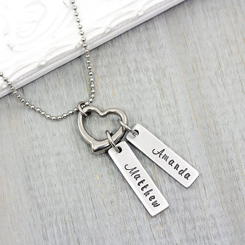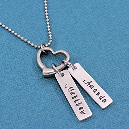 -. Title : Heart Charm Name Necklace - Personalized Hand Stamped Jewelry - Mom Jewelry