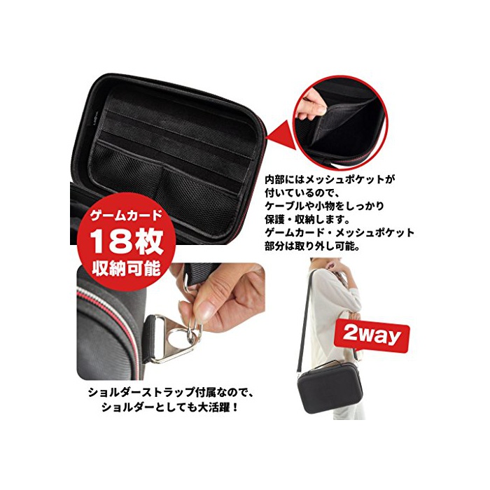 【운반 편리】수납 케이스의 바깥쪽에는 손잡이나 숄더 스트랩이 붙고 있고, 보호 케이스의 안쪽에는 중요한 스위치 본체나 콘트롤러 등을 확실히 고정 할 수 있는 설계가 되고 있습니다.운반시의 흔들림이나 충격부터 본체를 지킵니다.경량인 EVA소재에 방진 방수가 된 때문에,트래블 상품,파우치로서도 활약합니다.