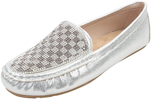 | Enimay Women's Classic Casual Dress Fashion Rhinestone Metallic Slip On Loafer |