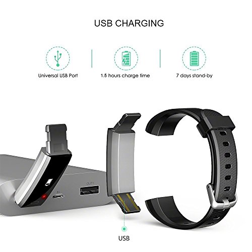 -. Feature : All-day Activity Tracking: (no heart rate monitor) The smart band will track your daily activity like steps, distance, calories burned and the minutes etc which help you to get a better understanding of your fitness level / Sedentary & SMS and SNS Notify: Sedentary reminder would help you to keep a healthy working condition by prevent you stay at seat for a long time. And you can never worry be missed the message that matter when you exercise / Sleep Monitor and Vibration alert: Automatically track how long and how well you sleep; Silent vibration for alarm, sedentary, SMS and SNS notify; Streamline designed OLED display and soft rubber strap can fit your wrist properly / Long Standby Time & All Compatible: specially designed a built-in USB plug to charge directly, no cable needed, one single charge gives you up to 7 days of working time; Device widely compatible to Bluetooth 4.0, System: IOS 7.1 or above, Android 4.4 or above / Free replaceable band & 18-month GUARANTEE: We offer 18-month guarantee to provide a risk free purchase experience, Any problem with our product please contact us no hesitate. A extra band is included in the package which gives you more choices and pleasure