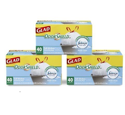 -. Title : Glad Odorshield Tall Kitchen Drawstring Trash Bags Fresh Clean Scent 13 Gallon 120 Ct (Pack of 2)