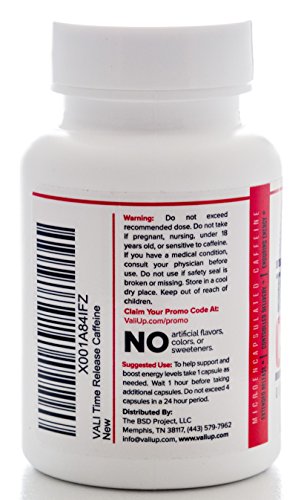 VALI Time Release Caffeine: • Provides 100 milligrams of Timed Release Caffeine per Capsule