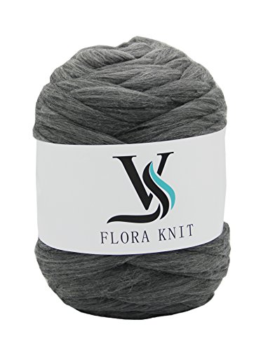 Merino Super Chunky Yarn Wool Roving for Arm Knitting (4.4LB(2KG)-50mm, GRAY)