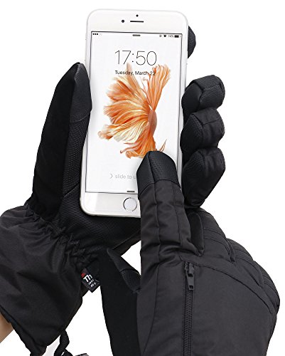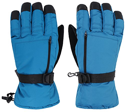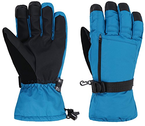 -. Feature : Features advanced thumb and fingertips that allow use of touchscreens so you can control your smartphone or tablet without having to take these comfortable gloves off / Zippered pocket on back of hand is large enough to fit cards, lift tickets, or keys without hampering flexibility; Backs of thumbs are soft and safe lens-wiper fabric / Waterproof, snowproof, & windproof exterior surface sheds water and snow; Moisture-wicking and air-circulating interior; Designed specifically for skiing, snowboarding, sledding, and other winter sports / Constructed with layers of 3M's super-efficient Thinsulate insulation ensuring breathability and maximum heat retention while remaining thin and light enough for optimal mobility and dexterity / Easy buckle wrist strap for secure and comfortable fit, and adjustable drawstring closure helps keep snow out