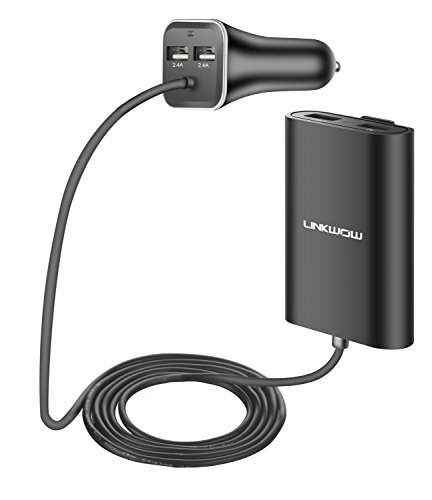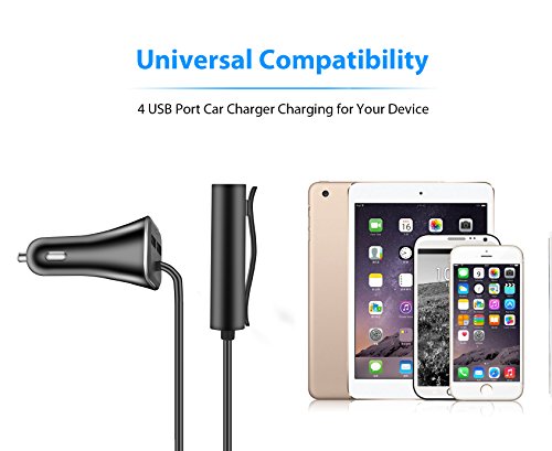 4 Ports Front/Back Seat Car Charger 9.6A Output USB Ports Compatible with Samsung Galaxy S8 S7,Apple iphone 7, ipad, Android and Windows Smartphone and Tablet, MP3 Players, and Other Mobile Devices