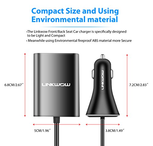 - Stylish and Compact:With 6 feet(1.8m) cable length the back seat passengers easily access charger.
