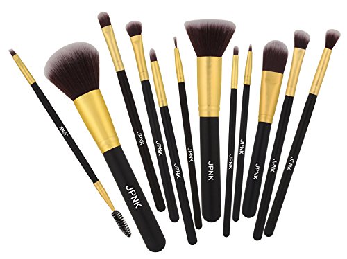 JPNK Synthetic Makeup Brush Set Cosmetics Foundation Blending Blush Eyeliner Face Powder Brush Makeup Brush Kit (12pcs, Golden Black)