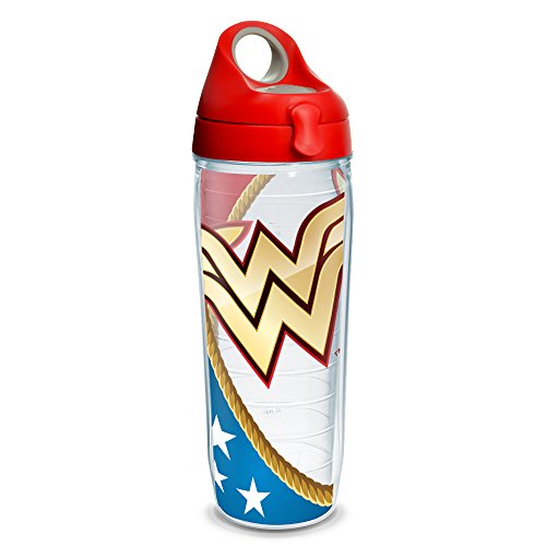 Tervis Warner Brothers Wonder Woman Colossal Wrap Water Bottle with Red Wb Lid, 24oz, Clear