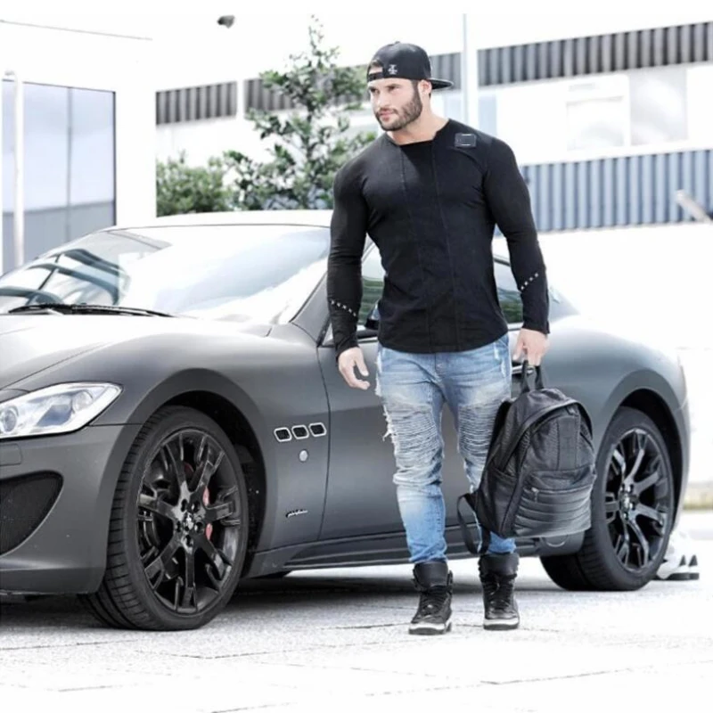 Sport T-Shirt type 4:long sleeve t shirt men black white sport