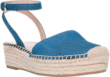 Closed toe open back espadrille wedge. Adjustable ankle wrap/buckle