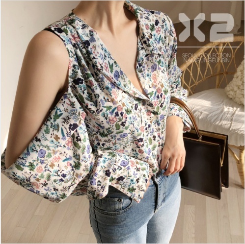 Women`s Asymmetric Blouse Ivory Black Yellow