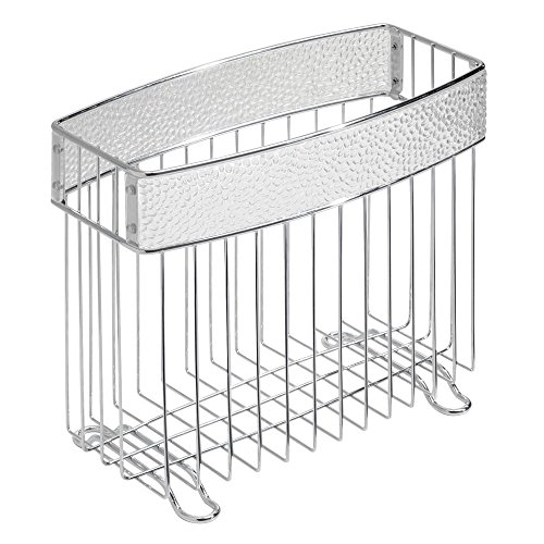 mDesign Newspaper and Magazine Holder for Bathroom, Office, Den - Clear/Chrome