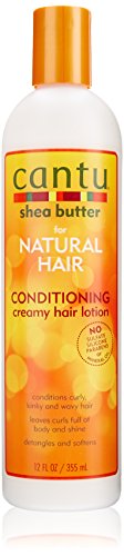 Cantu for Natural Hair Creamy Hair Lotion will soften, moisturize and detangle your curls, leaving them light, shiny and bouncy. Made with 100 percent Pure Shea Butter and formulated without chemicals or harsh ingredients. Cantu for Natural Hair restores your real, authentic beauty. Embrace your curly, kinky, or wavy hair with Cantu for Natural Hair. Conditions curly, kinky and wavy hair leaves curls full of body and shine detangles and softens hair. No Mineral Oil, Sulfates, Parabens, Silicone, Phthalates, Gluten, Paraffin, Propylene, PABA or DEA.Feature