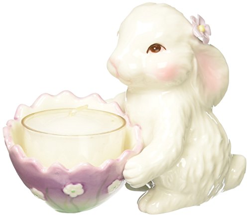 Cosmos 10596 Multicolored Fine Porcelain Decorative Bunny Tea Light Holder, 3-3/4-Inch