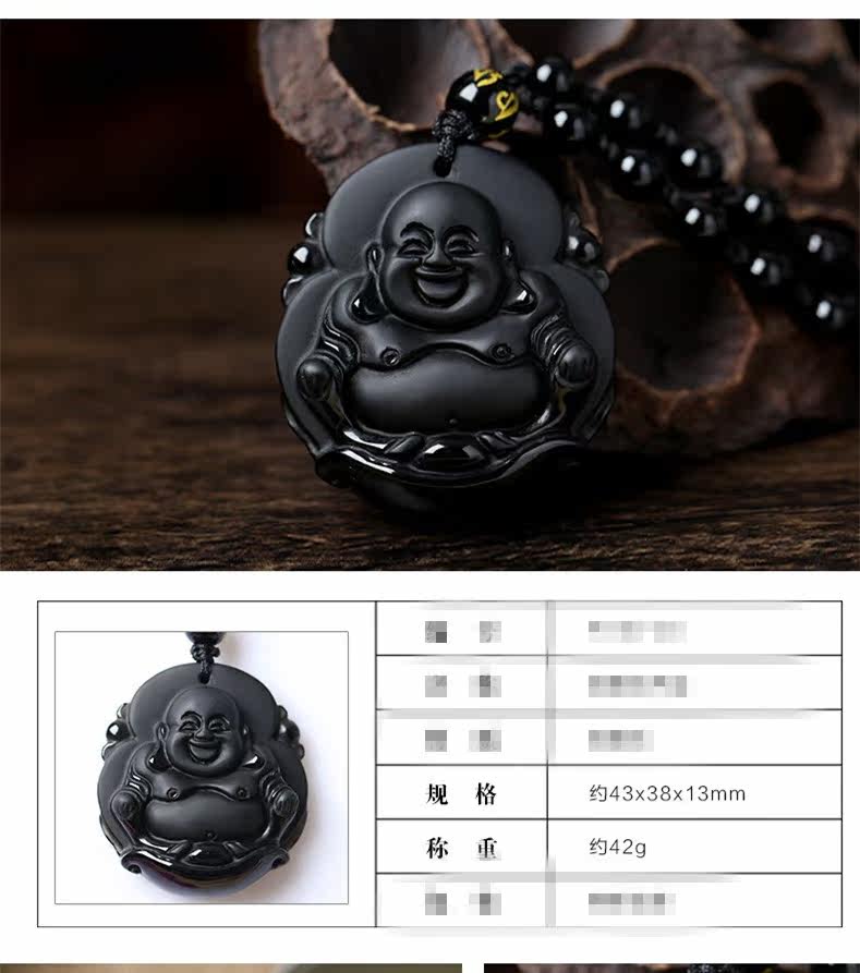 开光黑曜石磨砂自在佛女项链弥勒佛男吊坠