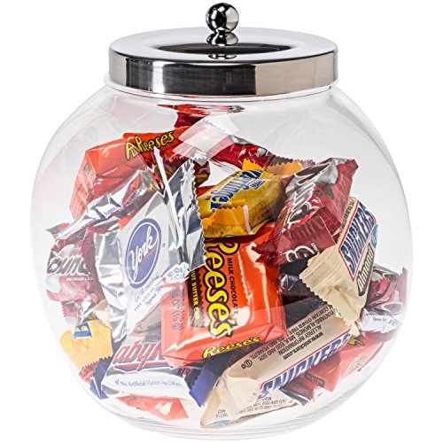 - This clear candy jar has a contemporary design with a beautiful display that blends in with any décor, from your kitchen countertop, pantry, bathroom vanity, dresser and buffet table all the way to your office and store front. Lightweight and clutter free it makes the perfect gift.