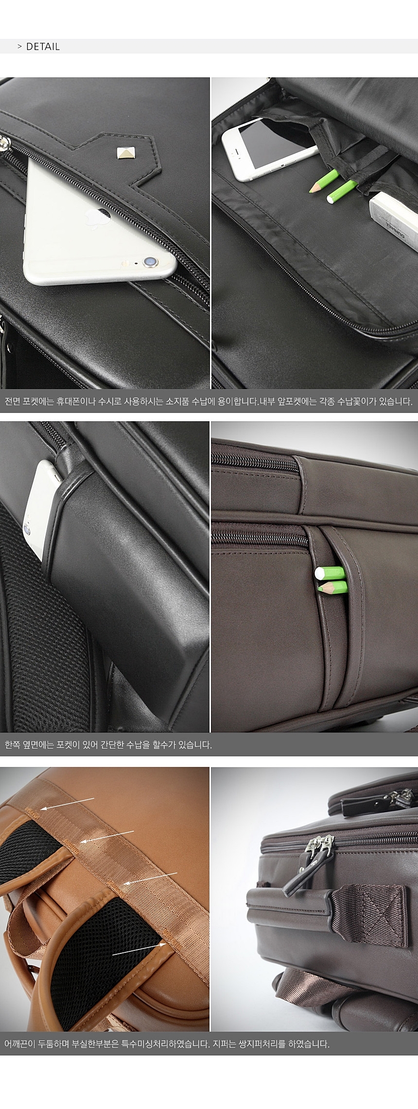 Men Square-to-Pocket Leather Formal Backpack 4372GBJ 30's Friends Casual Worker