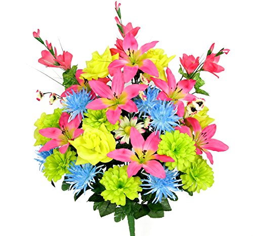 Admired By Nature Artificial Rose, Spider Mum & Glad Mixed Flowers Bush - 30 Stems with Greenery for Mother's Day or Decoration for Home, Restaurant, Office & Wedding, Fresh Mix