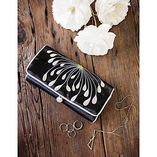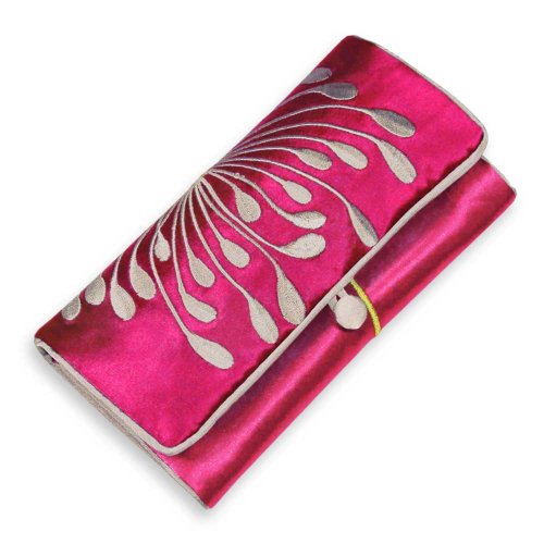 Jewelry Roll Clutch - Embroidered Chrysanthemum (Fuchsia)