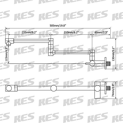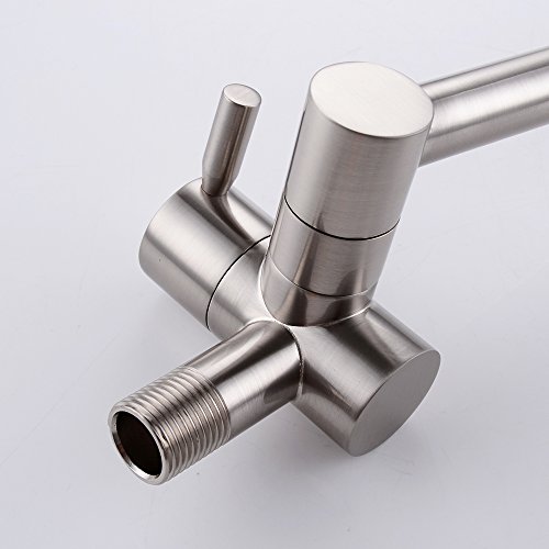 -. Brand : Kes -. Feature : Brass body construction ensuring quality and longevity / Designed for cold water hook up / 18-4/5-Inch overall reach, dual jointed swing spout / One ceramic disc valve, quarter turn / 1/2 IPS Male Threaded, wall mounted installation -. Label : KES Home (U.S.) Limited -. Manufacturer : KES Home (U.S.) Limited -. PackageQuantity : 1 -. ProductGroup : Home Improvement -. ProductTypeName : PLUMBING_FIXTURE -. Publisher : KES Home (U.S.) Limited -. Studio : KES Home (U.S.) Limited -. Title : KES K920 Brass Single Handle Pot Filler Faucet Swing Spout Wall Mount