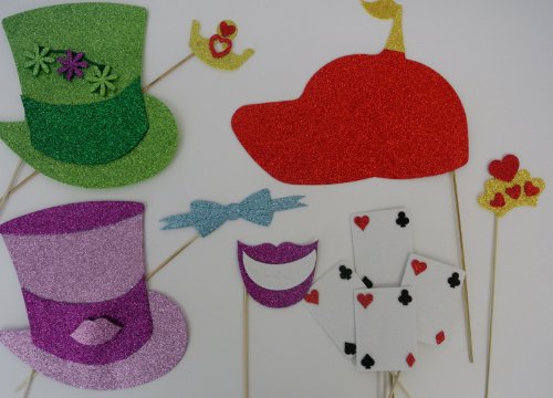 8 Pc Photo Booth Party Props Mustache on a Stick Alice in Wonderland Inspired Photo Booth Party Props Mustache on a Stick. Queen Mad Hatter Cards Alice Blue Bow