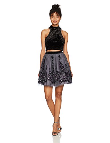 Blondie Nites junior short two piece velvet with flocked skirt