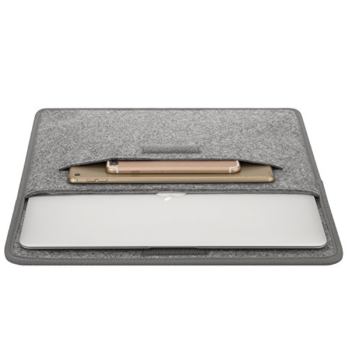 Versatile Storage: Provides one main pocket for laptop and a slightly smaller pocket for earphone, pens, notebook, etc. Additionally, a small felt pouch for mouse, power chargers, cables, etc.