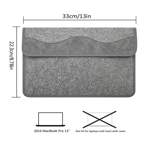 Size: Internal Dimensions: 12.99×8.77 inches; External Dimensions: 13.58×9.64 inches. This laptop sleeve specially designed for 13 inch MacBook Pro with retina display A1706/A1708.