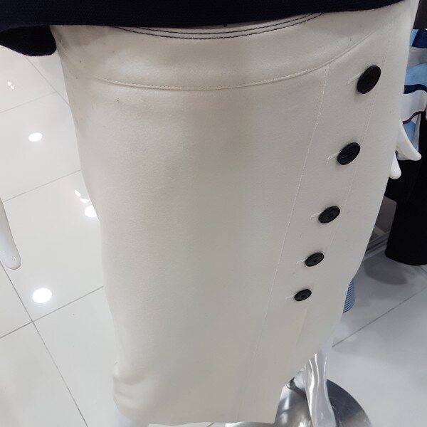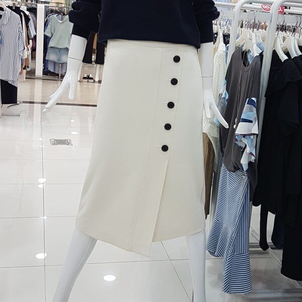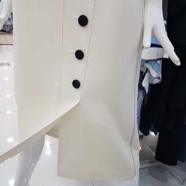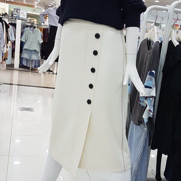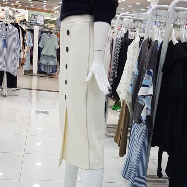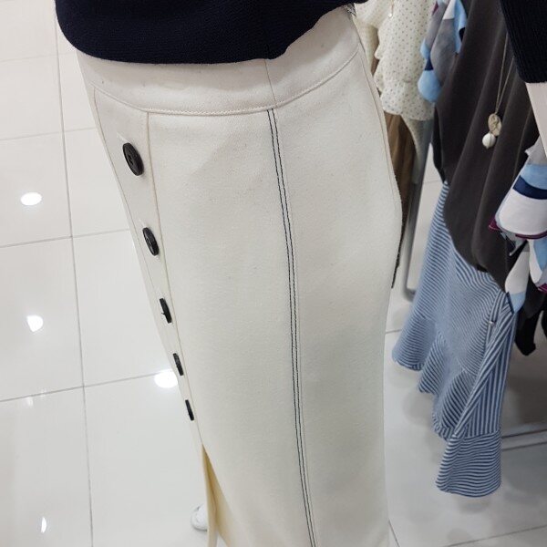 아이보리에 롱기장이 여성스런스커트네요힙선잡아주며 떨어지는 핏에 날씬해용앞트임과 사선버튼디테일에 세련하구요모직에 올겨울 포인트의상으로 좋을것같아요세련에 분위기있는 요아이 강추용^^총장70