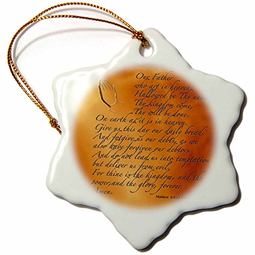 3dRose orn_32545_1 The Lords Prayer Matthew 6 9 13 Prayer Hands and Verse Embossed on Copper Snowflake Porcelain Ornament, 3-Inch