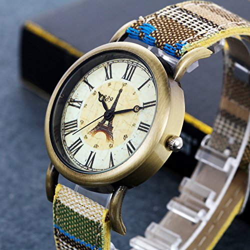 -. Feature : 100% Brand new watch, come with gift bag P.R.Inted Lancardo, We can engrave words on it for just 3.99, please contact me first. / Teenager girls wrist watch, Vintage antique brass metal case, Paris Eiffel Tower dial / Length:8.7"(22cm), Case Dim.:1.3"(3.4cm), Thickness:0.3"(0.8cm), Band Width:0.6"(1.5cm) / Big easy read roman numerals markers, colorful mesh woven canvas surface leather strap band / Living water resistant design (Not suitable for swimming, diving, shower, etc.)