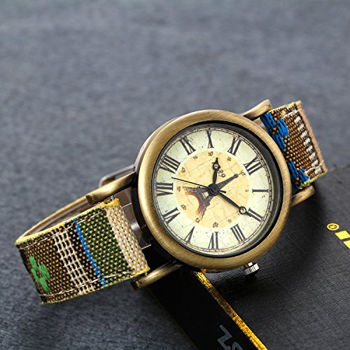-. Title : Lancardo Paris Eiffel Tower Teen Girls Antique Brass Wrist Bracelet Watch Mesh Woven Canvas Strap