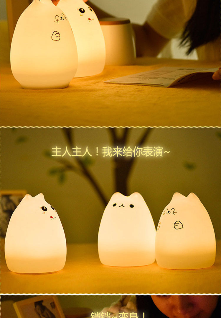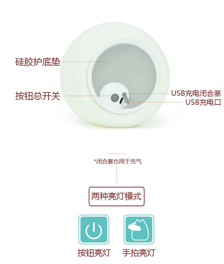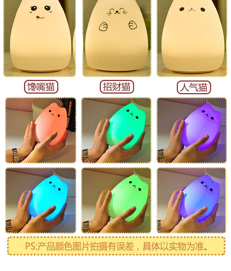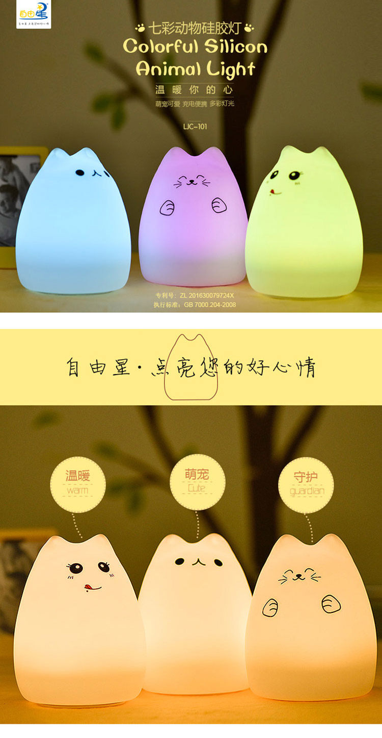 创意可爱七彩硅胶动物灯led拍拍灯usb充电便携宝宝喂奶床头小夜灯