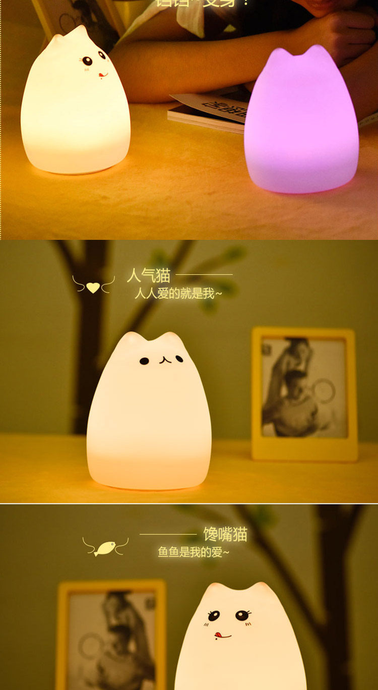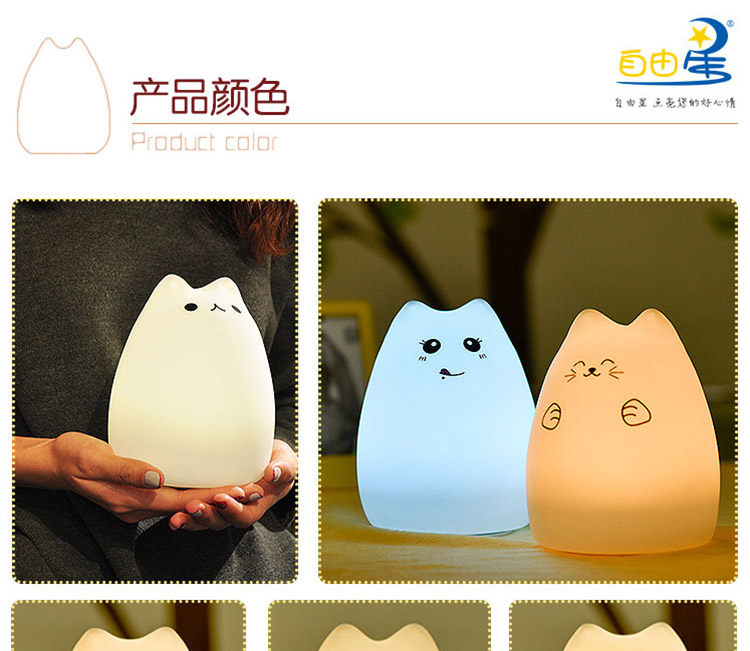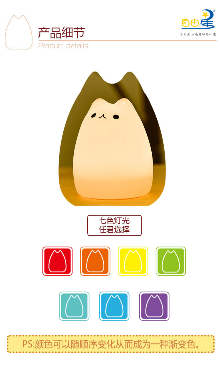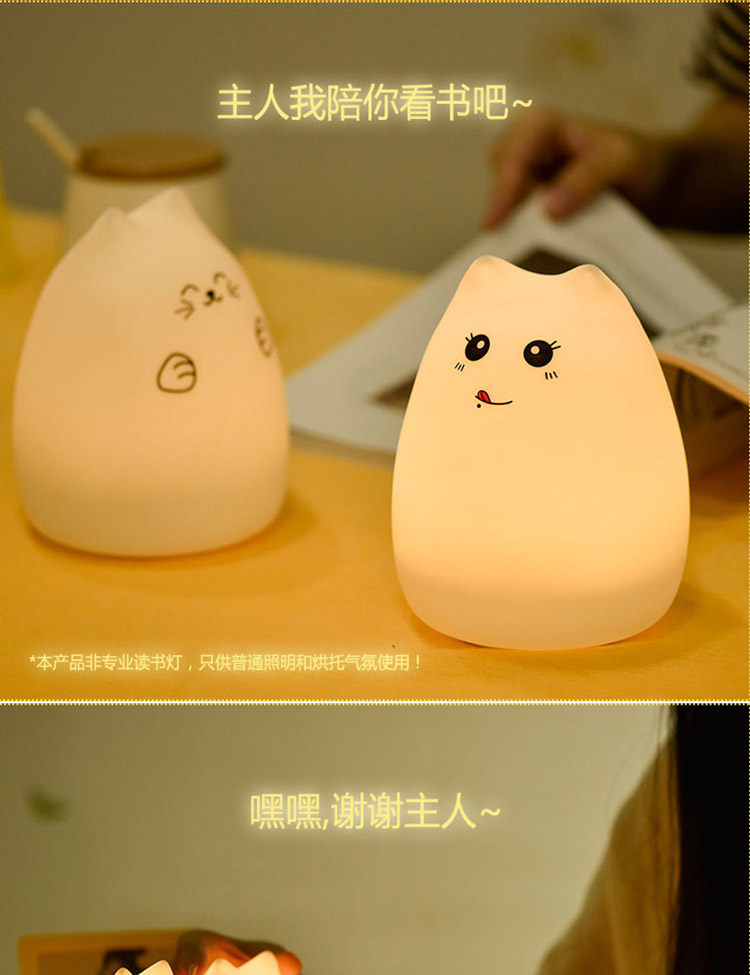 创意可爱七彩硅胶动物灯led拍拍灯usb充电便携宝宝喂奶床头小夜灯
