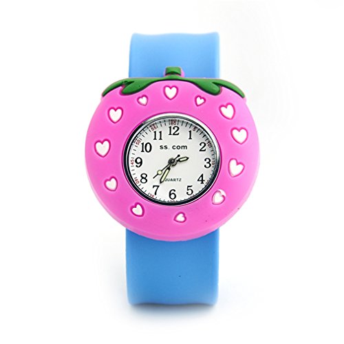 -. Title : Vavna Lovely Top Boys Girls Fashion Cartoon Animal Silicone Slap Snap On Wrist Watch - Pink Strawberry