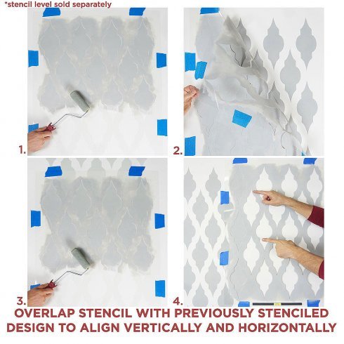 - Feature : Reusable stencil made of 12 mil clear plastic, easy to use and clean / Economical wallpaper alternative, great for accent wall, DIY home decor / Additional Top Stencil and Small Single Stencil included / Detailed Stenciling instructions with color photos plus Free stencil ($4.95 value) included / Step-by-step Stencil video: http://www.youtube.com/watch?v=xlzcVzPcnG8