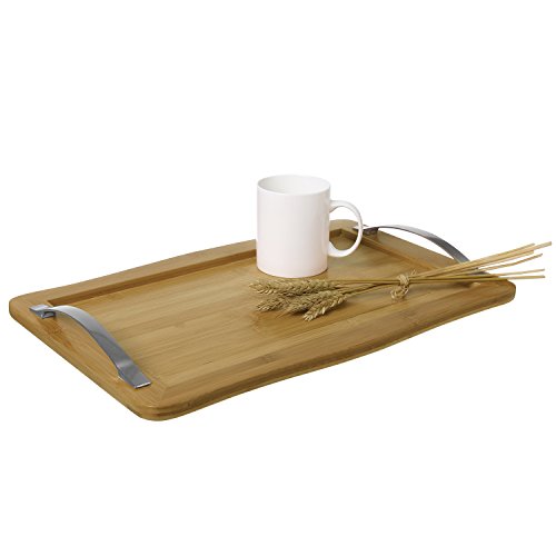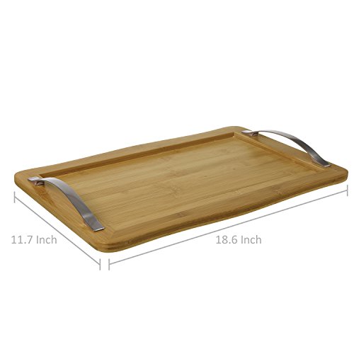 Rectangular Bamboo Breakfast Serving Tray with Stainless Steel Handles