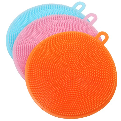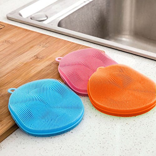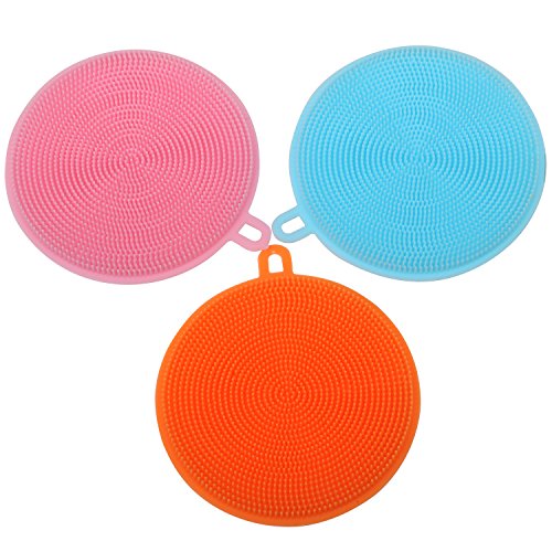 TRIXES Pack of 3 Multipurpose Silicone Scrubbing Pads Bathroom Kitchen Cleaning
