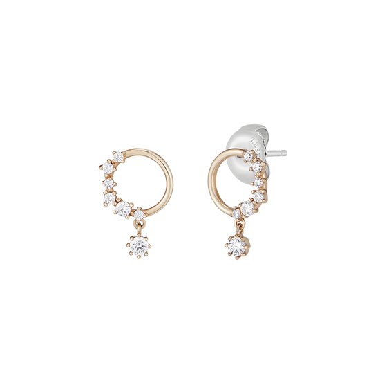 * 멀티사이즈 화이트 라운드 스톤의 이레귤러한 배열로 흩날리는 꽃잎을 형상화한 귀여운 스타일의 이어링