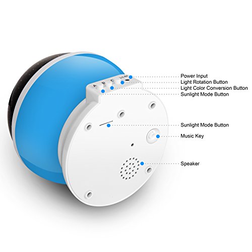- LIGHTING MODELS -- Model A - The nightlight light (warm light), press A again will shut off model A. Model B - Switch for the color of the light (monochrome light or colorful light overlay) [Note: Press B 9 times in a row, The model B would shut off]. Model C - It is rotary switch (rotate or not rotate freely chosen) [Note: Press C again would shut off the rotation].